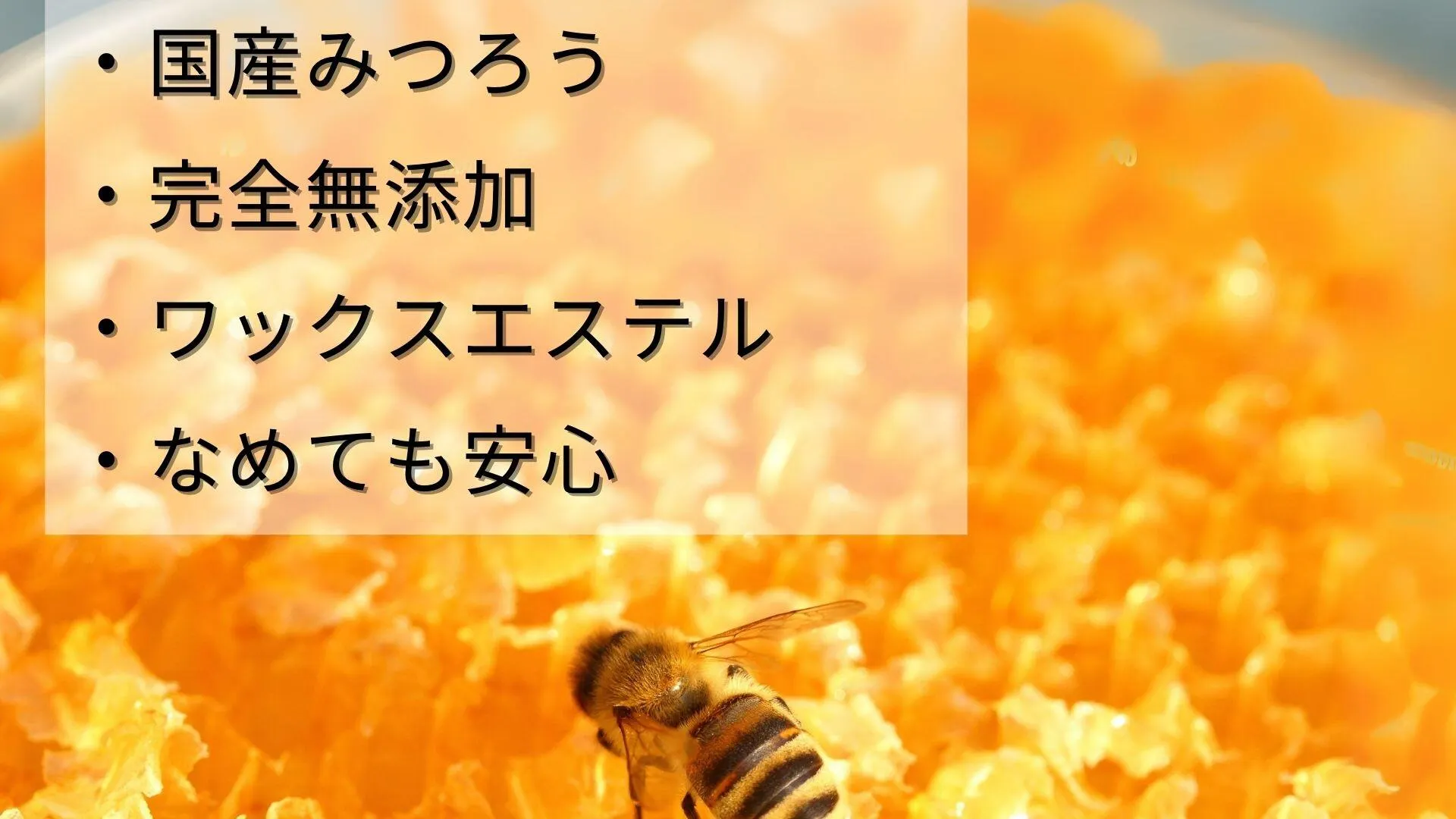 国産みつろうと、オーガニック認定されたゴールデンホホバオイルのみ使用、全てヒューマングレード。だからこそ舐めても安心です。
