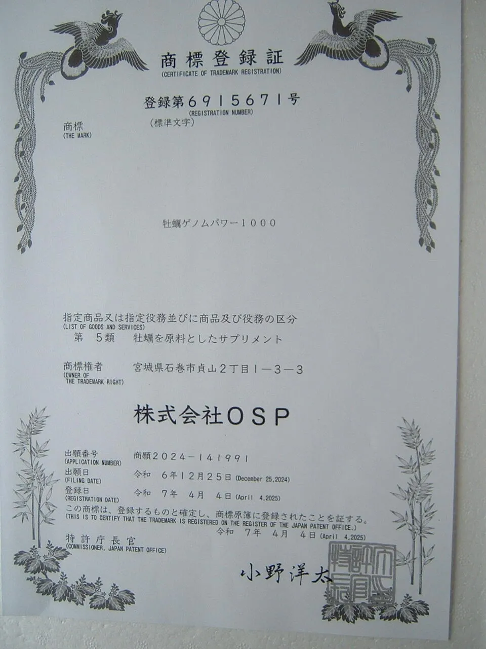 2025年4月には「牡蠣ゲノムパワー1000」で商標登録を取得しています。