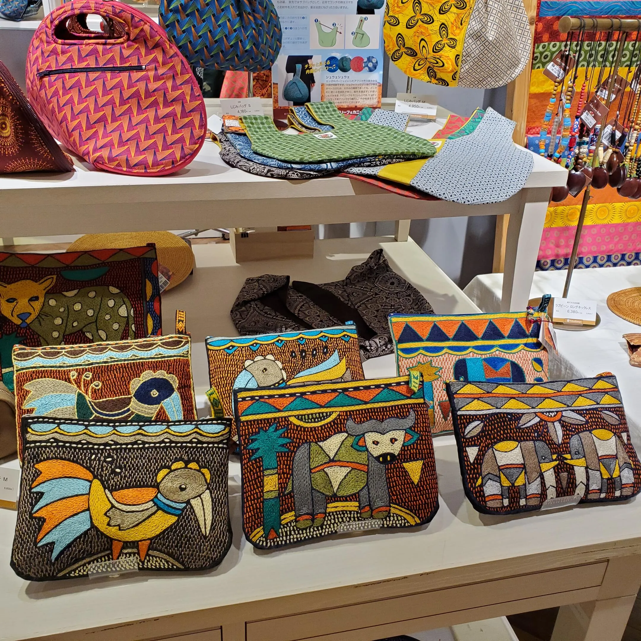 オンラインショップ、全国の百貨店やファッションビルでのPOP UPイベント、アフリカンフェア、マルシェにて出店・販売しています。成田空港・関西空港の一村一品マーケットでも、一部の商品をお取り扱いいただいています。