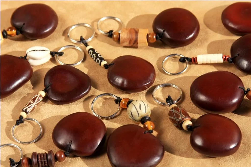 1番人気は南アフリカで幸運を呼ぶ豆、先祖からの贈り物とされる世界で1番大きな豆「 ズールーラブビーン」を使ったアクセサリーやキーリング