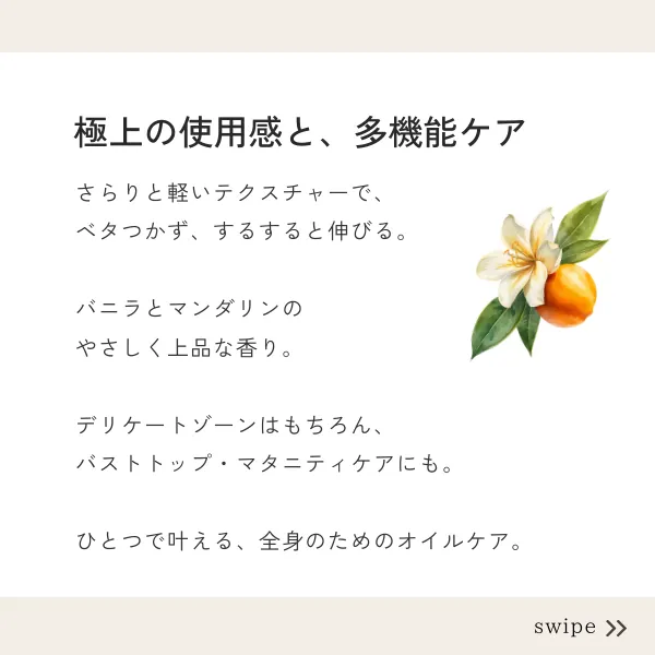 デリケートゾーンだけでなく、バストトップや全身、マタニティケアにも使える多用途性も魅力です。
