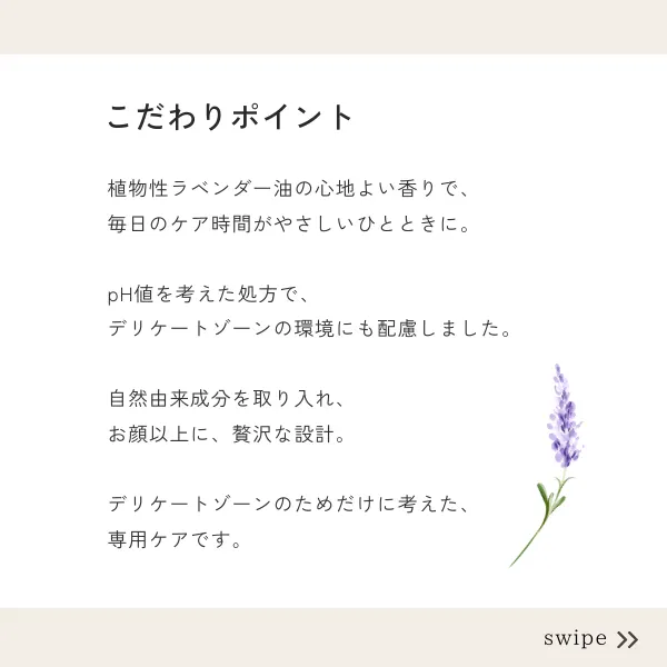 あなたがもっと自分を知るためのデリケートゾーン&セルフケアブランド。 フェムケアの可能性を引き出す最適の配合にたどり着きました。