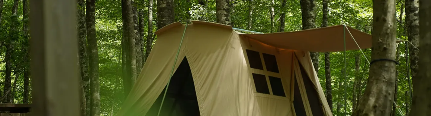 現在では鳥取県大山の麓に「沢田テント」を実際に体験いただけるグランピング施設「沢田ベース」の運営を行っております。