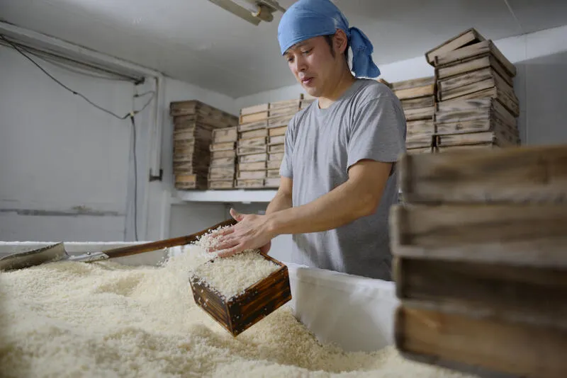 私たちの「生糀」は、伝統の「室蓋製法」によって生まれる高品質な糀です。150枚以上の杉の糀蓋を用い、4日間かけて育てるこの製法は、温度と湿度を細やかに調整するため、糀菌が最適に育つ条件を整えます。品質と風味の一貫性は、他の製法では得られないものです。