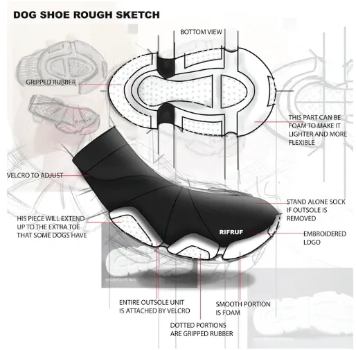 ・長時間の散歩でも快適さを提供するEVA(エバ)フォームミッドソールと悪天候で滑りやすく濡れた路面をグリップするテクスチャーラバーアウトソールは、ドッグシューズでは初の試みです。