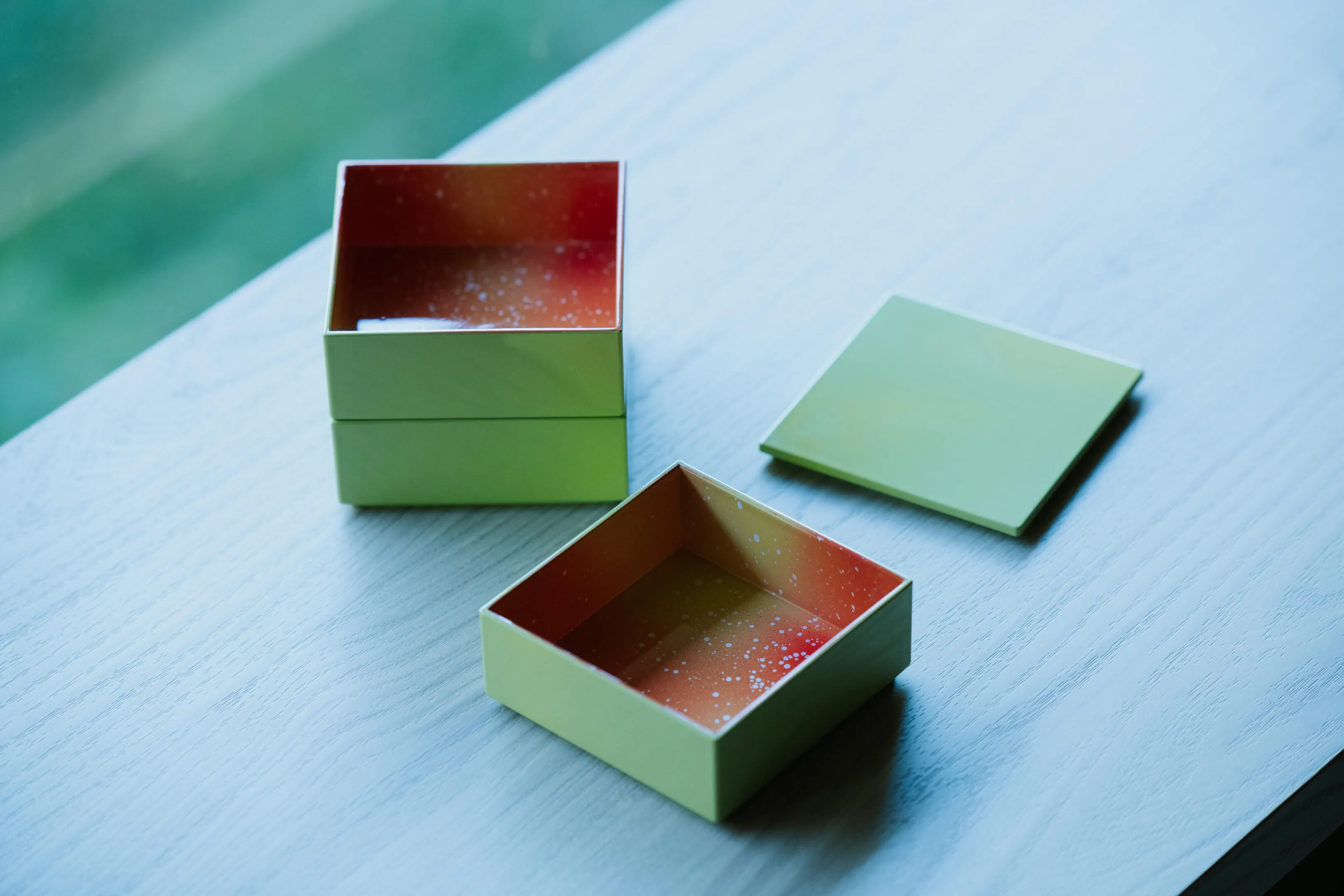 ・外側はシンプルで内側は対照的な色彩の重箱