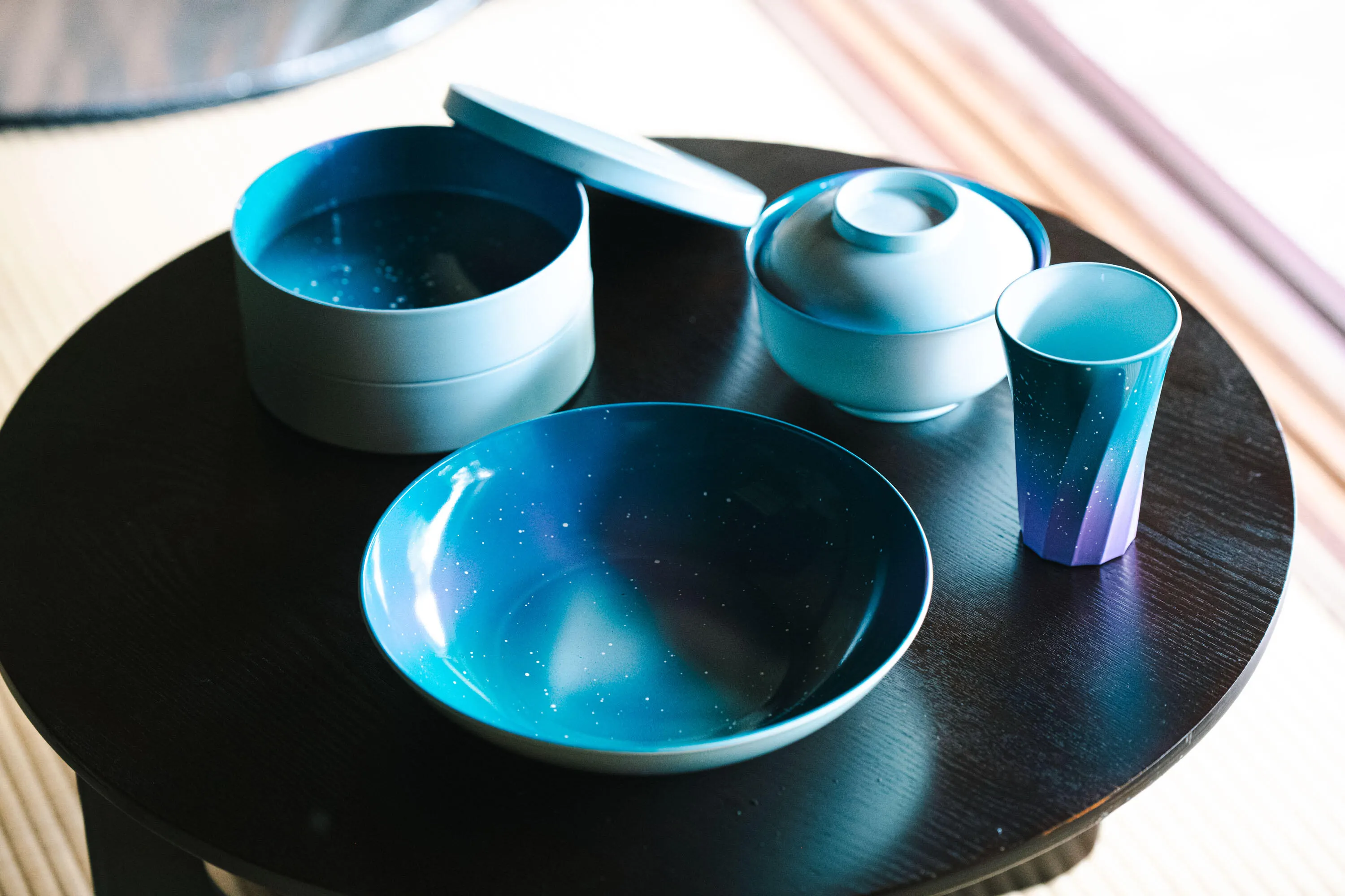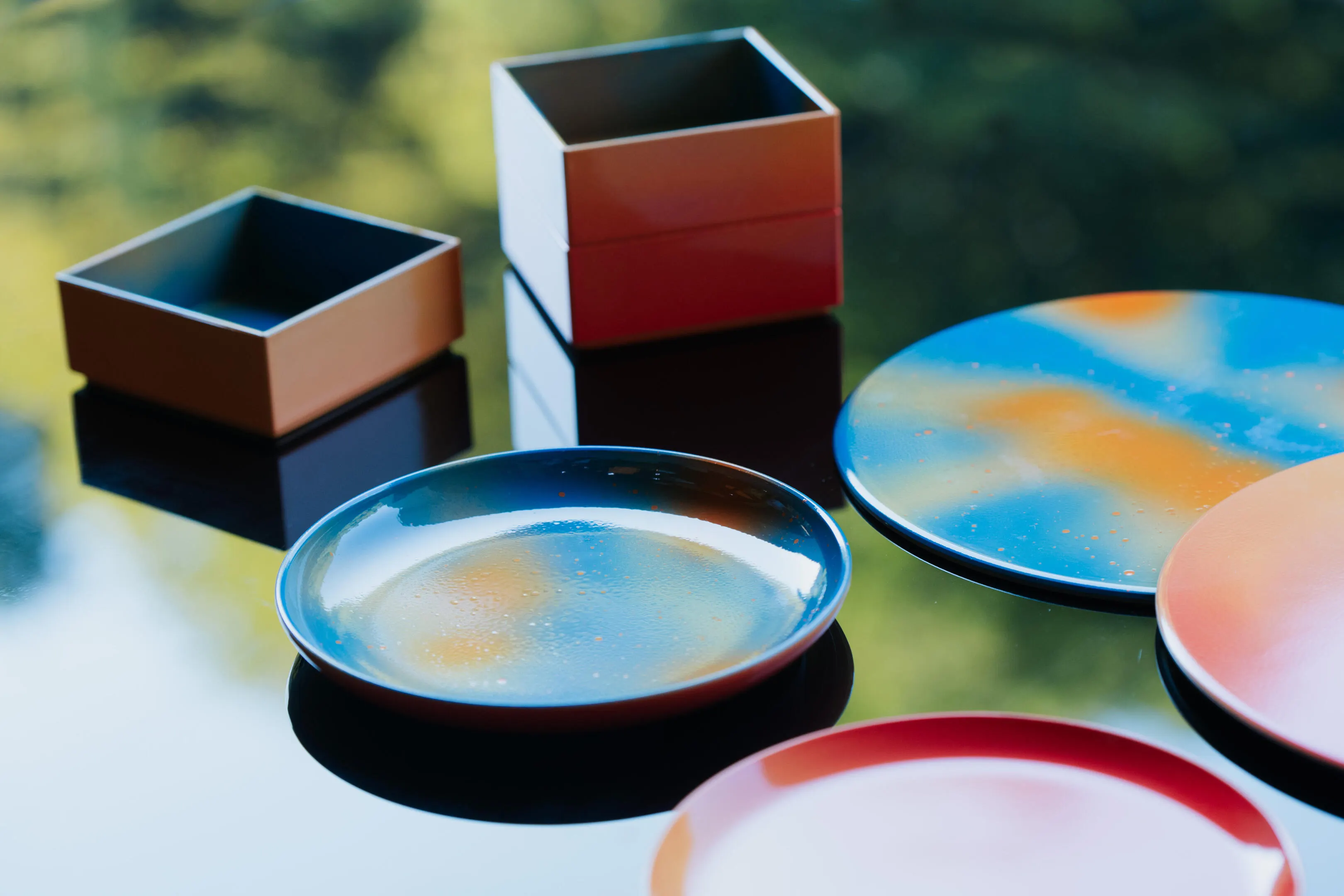 これまで目立つことのなかった吹付塗装職人の技術で仕上げた「漆器」とは思えないテーブルウェアとインテリアアイテムです。