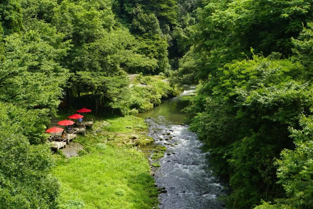 加賀市山中温泉に沿って流れる川の渓谷美を表現した「鶴仙渓」