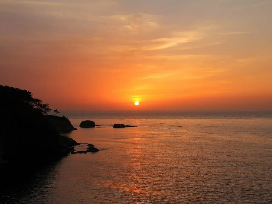 加賀市加佐の岬海岸から見た幻想的な夕焼けの「晩夏」