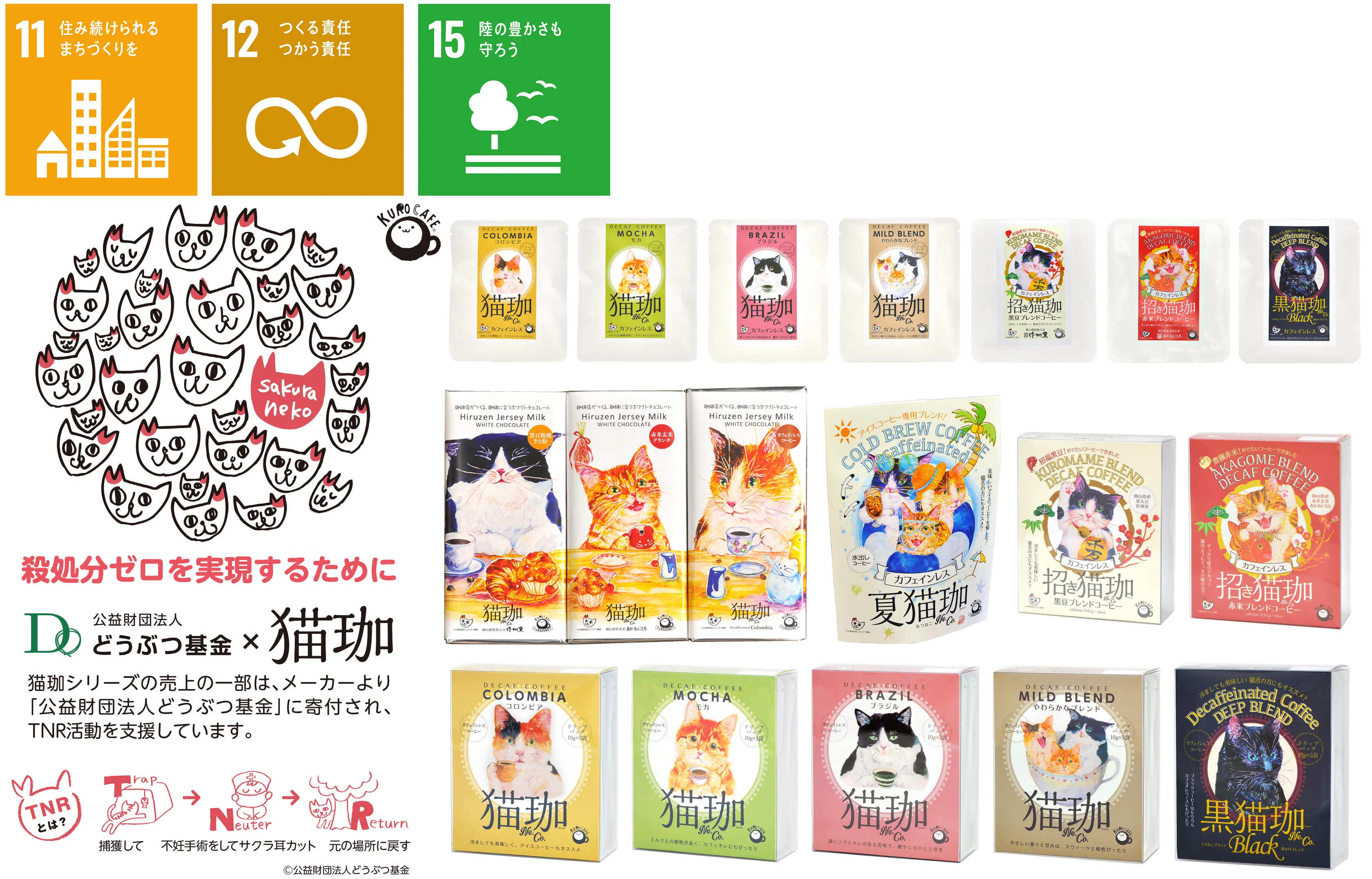 猫珈シリーズの商品については「公益財団法人どうぶつ基金」様と提携し、売上げの一部を寄付しています。動物の殺処分ゼロの社会を目指して、私たちにもできることで支援してまいります。
