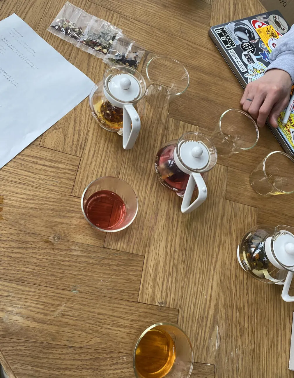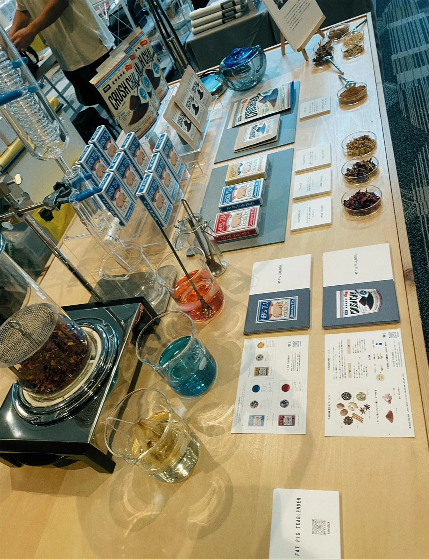 商品開発、OEM、生産管理を担当し、いわゆる"ティーブレンド"を行う中で、自分でお茶をブレンドすることがとても面白いと感じ、まずはそれを広めたり、やってもらうことが出来ないかと、ティーブレンドのワークショップなどを中心にFATPIG TEABLENDERとして活動を2017にスタートしました。