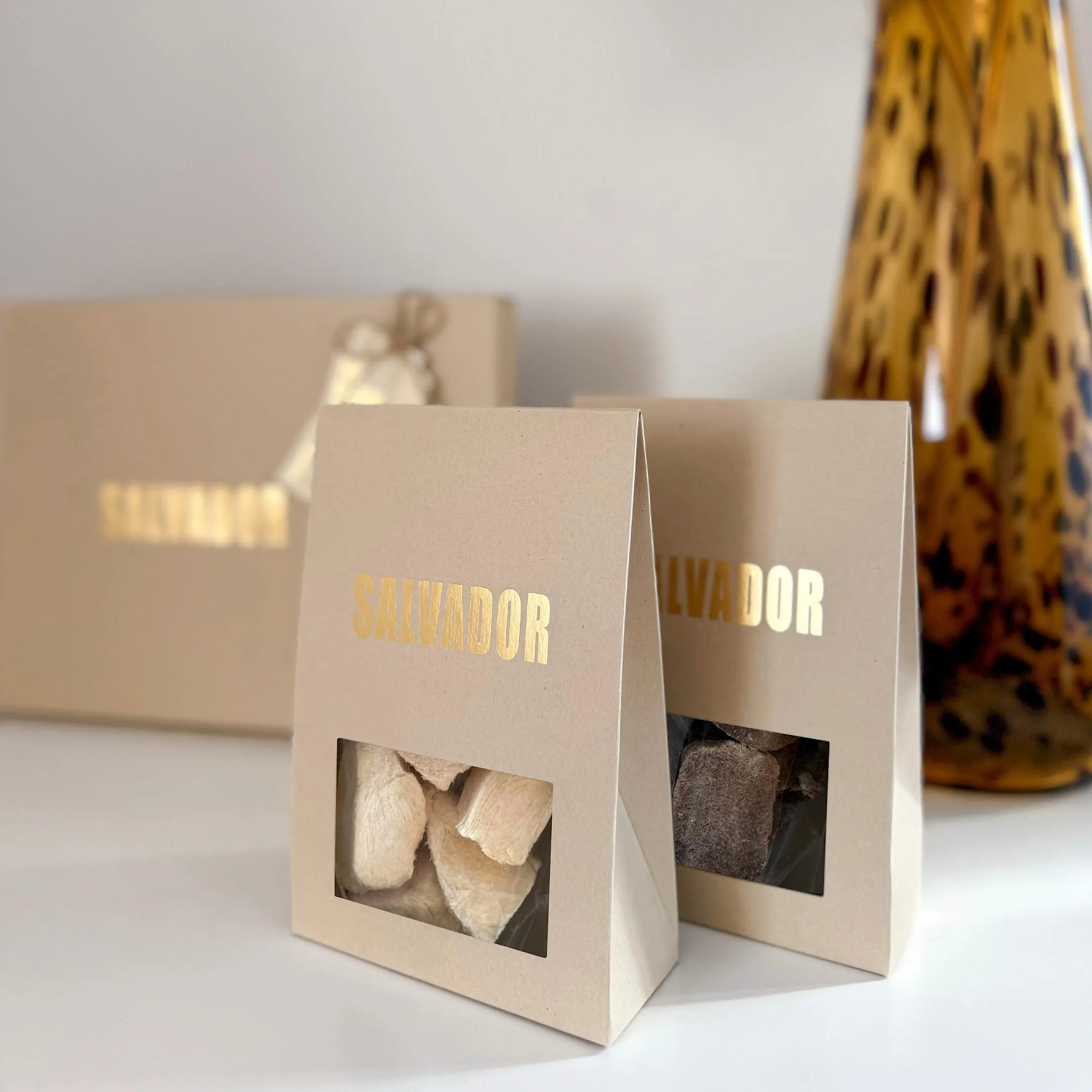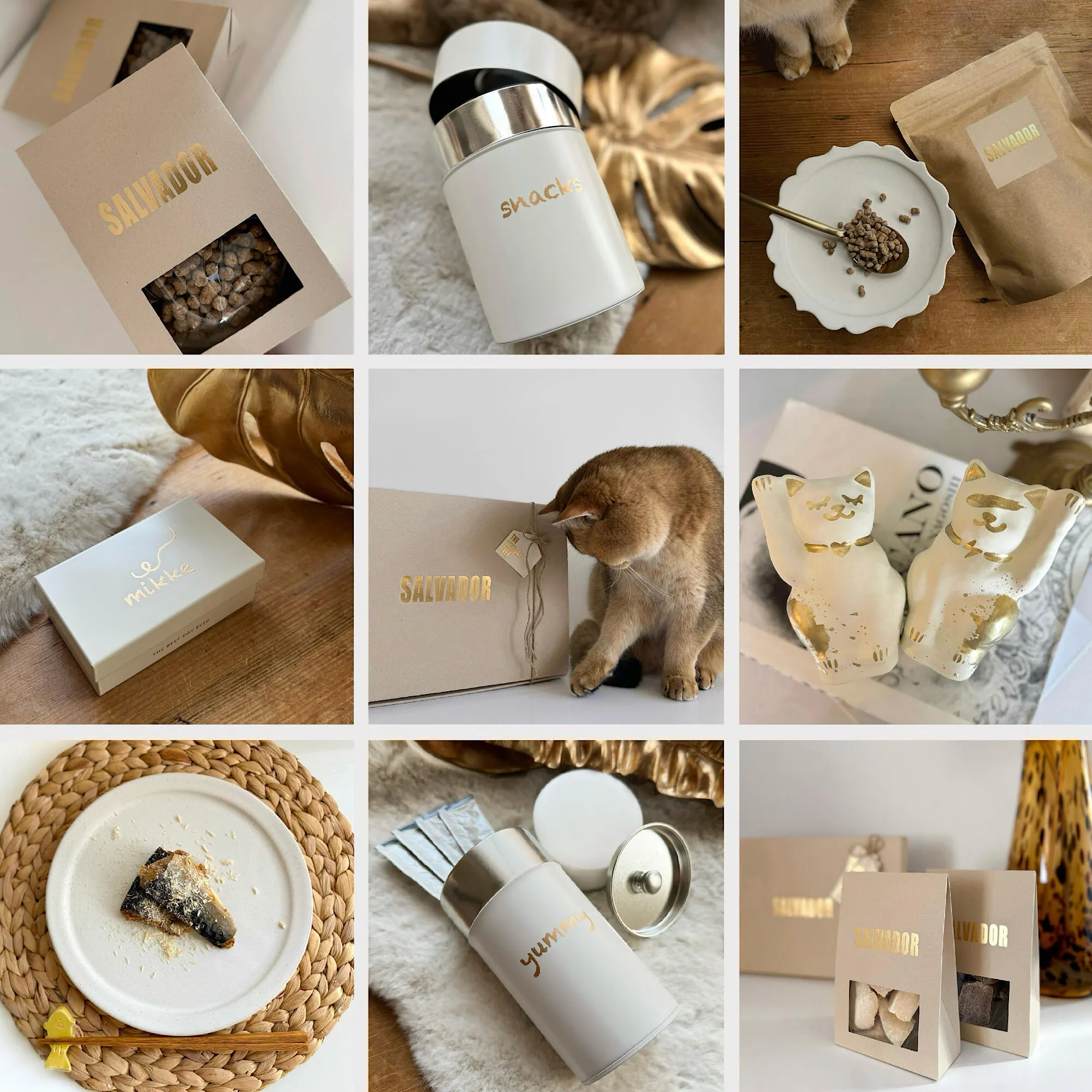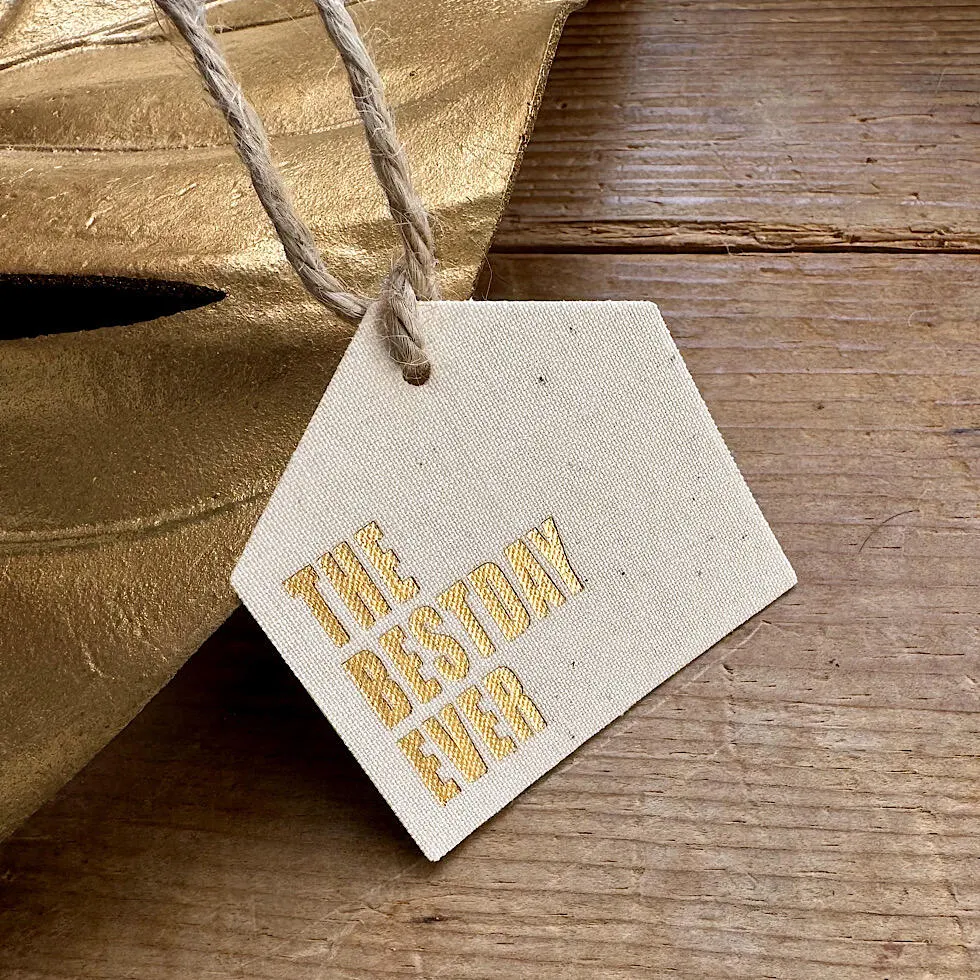 ナチュラルなコットンホワイトをベースに、上品なゴールドを使っておひげのマークを描いた癒しモダンなデザイン。