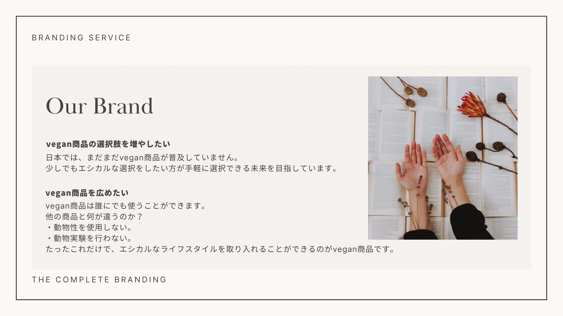 国産のヴィーガンコスメ市場を広げたい思いでブランドを立ち上げました。誰かを犠牲にしないコスメだからこそ本当の美しさを実現させます。