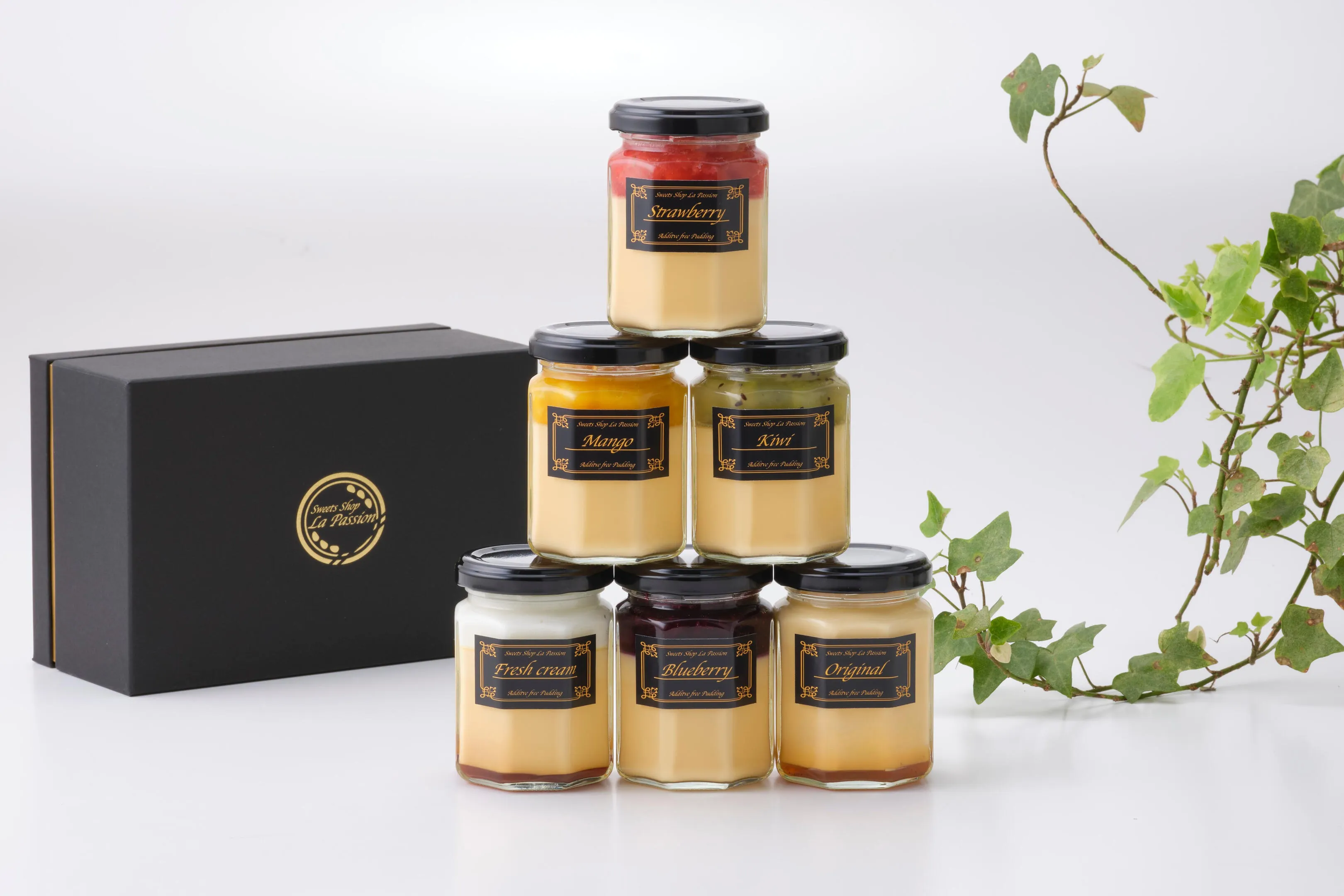 オリジナル・生クリーム・ストロベリー・キウイ・マンゴー・ブルーベリーの全6種が揃った看板セットです。初めての方でもラムールプリンの世界観をまるごと体験でき、完全無添加だからこそ幅広い年代への贈り物としてもご好評をいただいています。高級感あふれる専用ボックスに丁寧に収めてお届けするため、誕生日・内祝い・季節のご挨拶など、特別な場面に選ばれる一番人気の商品です。