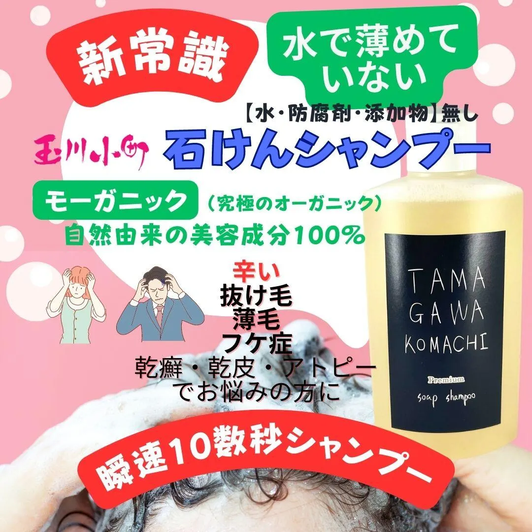 石けんシャンプーは髪の毛の状態によりキシミ、ゴワツキ、ベトツキ感が酷く起きます。従来のシャンプーよりもその点を改善した商品です。水で薄めていいませんので、1回分が100円玉程度量で1本3か月分です。セリシン(シルク成分)、マヌカハニーUMF@15+を配合。頭皮、髪の毛にお悩みの方に特にお勧めです。独自開発の専用トリートメントリンスもございます。