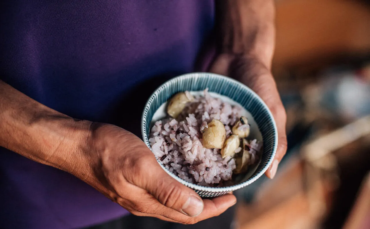 古代米とも称される黒米は、白米よりも栄養価が高く、ビタミンやミネラルが豊富で、黒米のみ含まれるアントシアニン由来のポリフェノールにより、白米では出せない独自の甘みを生み出します。