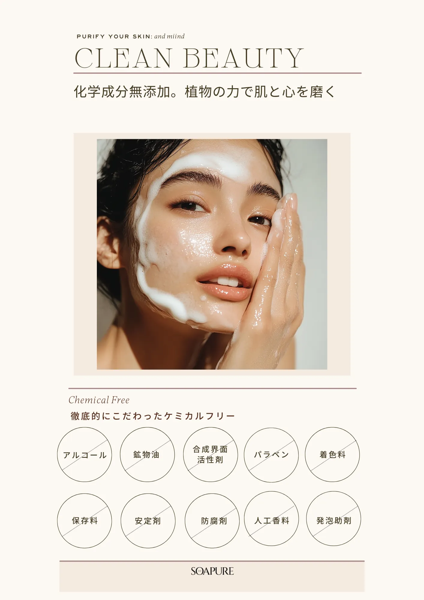 古くから美肌や清潔な肌作りに効果があると信頼されてきた植物の成分を贅沢に配合し、くすみのない透明感のある肌を育てるソープ。