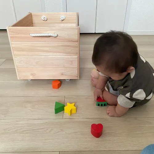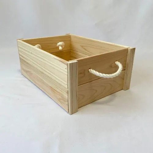 シンプルながらも使い勝手の良さで多くのお客様に愛されているアイテムです。清々しい香りと美しい木目が特徴のひのきを贅沢に使いました。無垢材の厚みと強度にこだわり、重ねても安定する設計で、ロープがついているので取り出しも便利です。「子供が自分で片付けられるようになった」「リビングがすっきりした」といった喜びの声をいただいています。