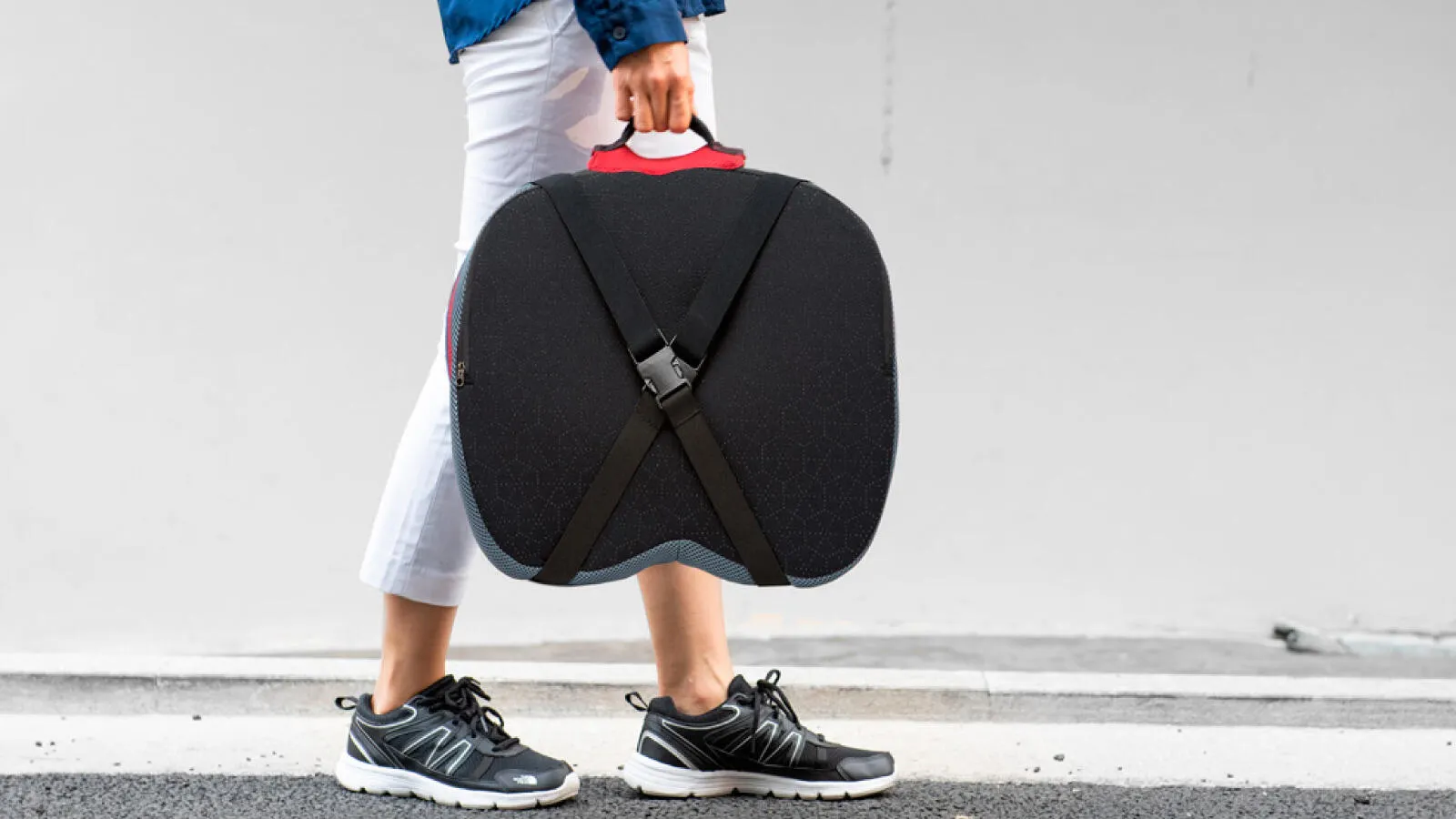 持ち運びに不便だった点を考慮して、折り畳んで薄く重ねられるよう設計されています。バッグのように持ち歩いて、カフェや屋外のベンチでも使用出来ます。