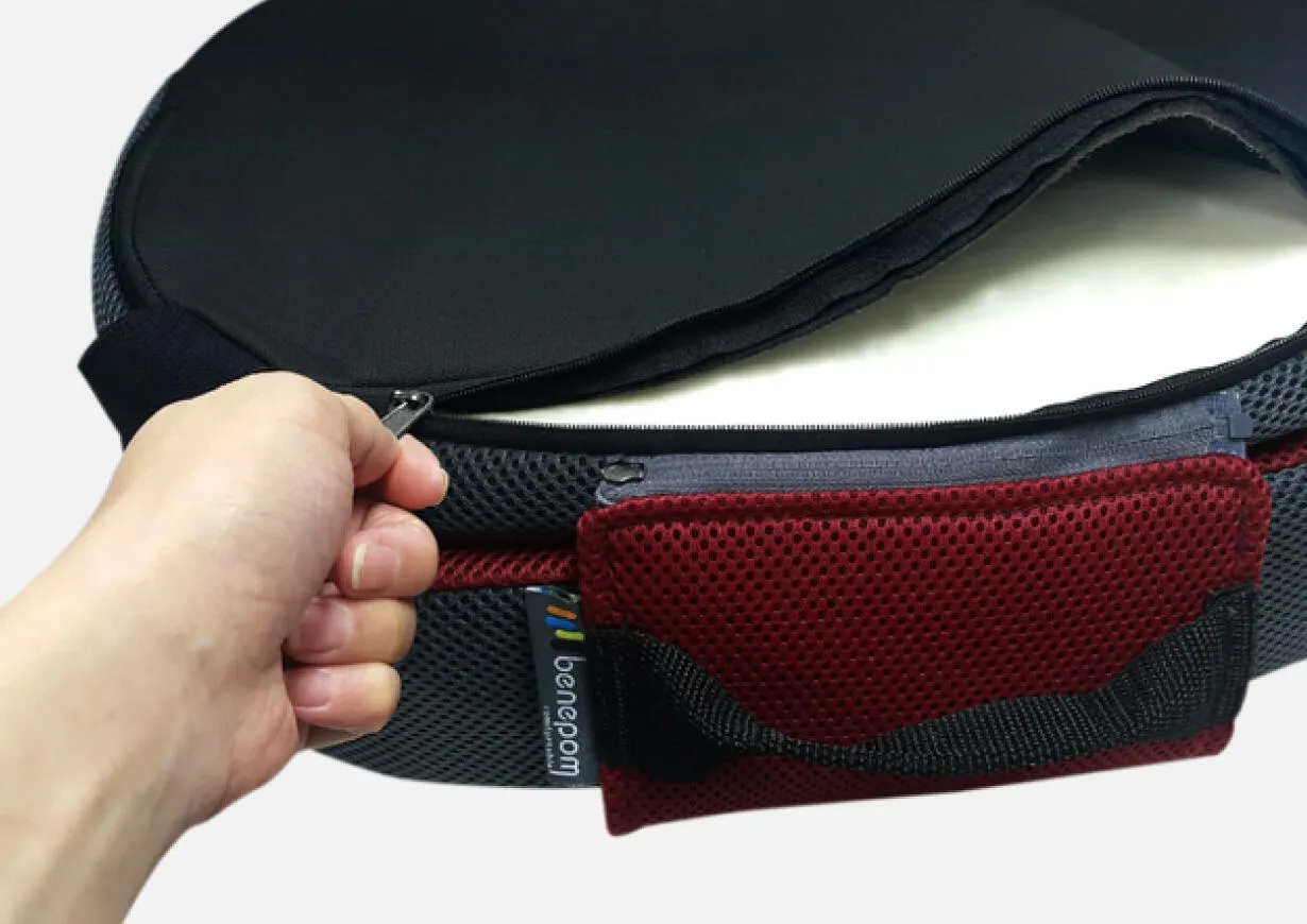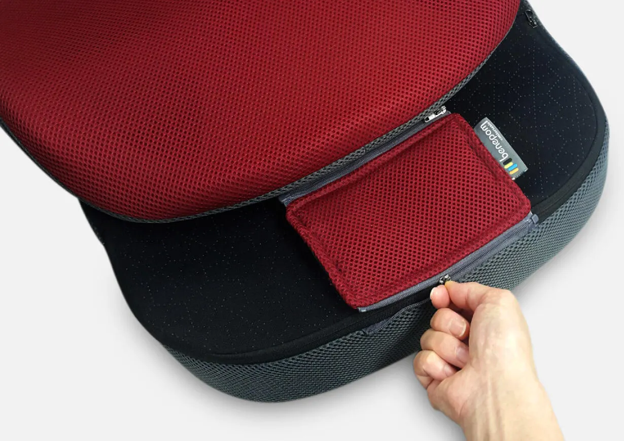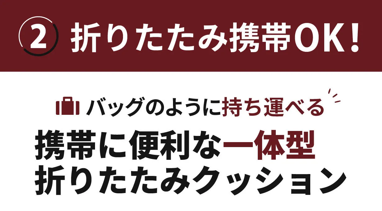 いつものバッグのように持ち歩くことができるので 場所を選ばず姿勢を正してくれる一体型のクッションです。