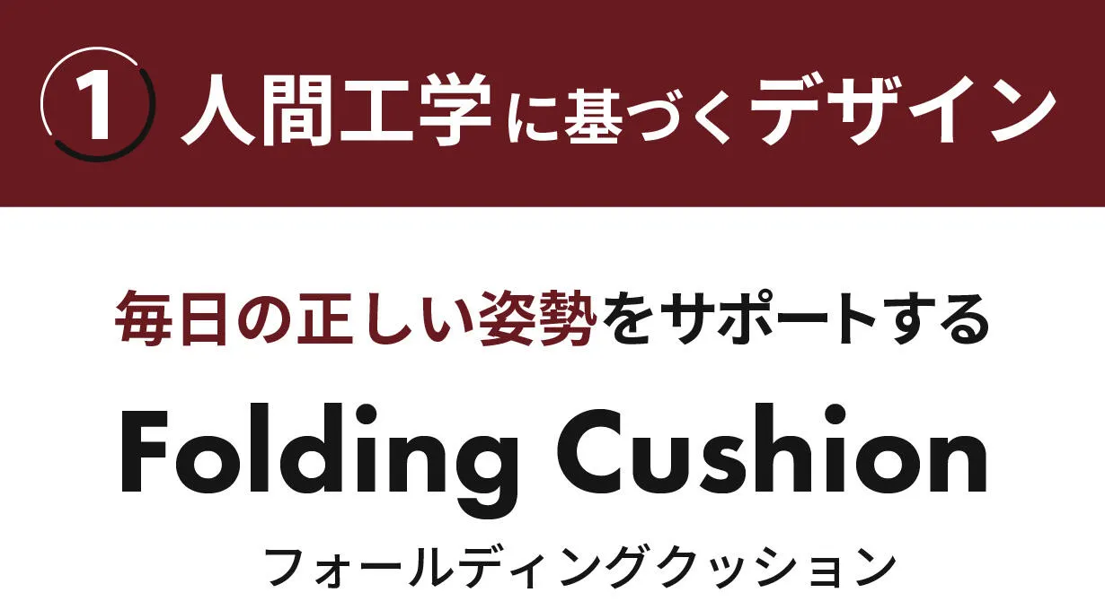 着席時の足の間隔、体型たわみを考慮した人間工学的設計で正しい姿勢がキープ出来る折りたたみクッション