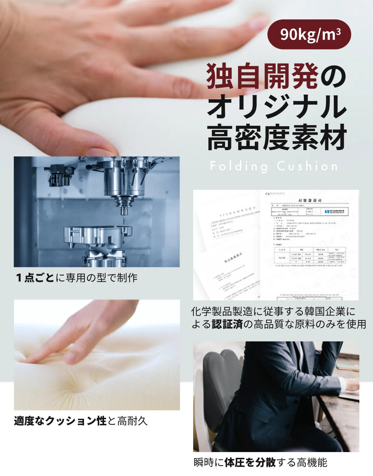 「Folding Cushion」では 独自開発のオリジナル高密度素材 のVISCOFOAMを使用。