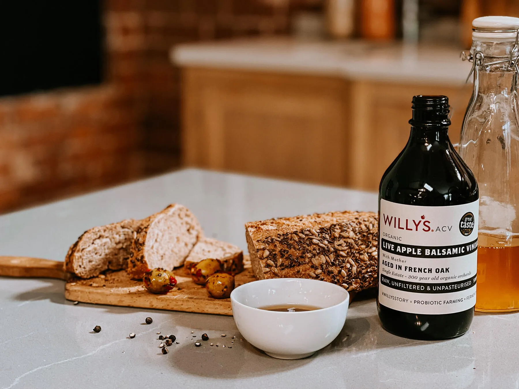 フレンチオークの樽で3年間熟成されたWilly's ACVのバルサミコ酢は、すでにとろみがあり、リンゴの旨みが凝縮された甘さがまるでアップルソースのような味わい。