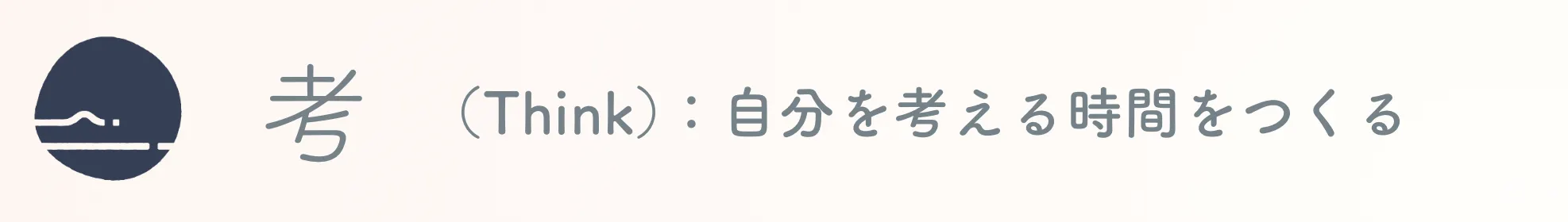 「最近、無理していないかな?」「私の身体は今、何を求めているんだろう?」と、忙しい日常の中で後回しにしがちな自分のことを「考える」時間を作ります。
