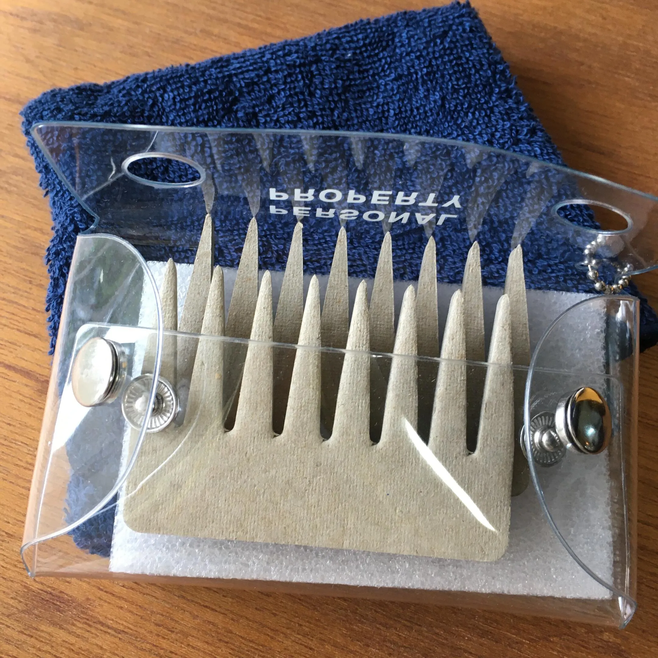 パルプモールド成形のくし。ハンカチ、タオルでは拭けない頭皮の汗と皮脂を手軽に拭きとります。
