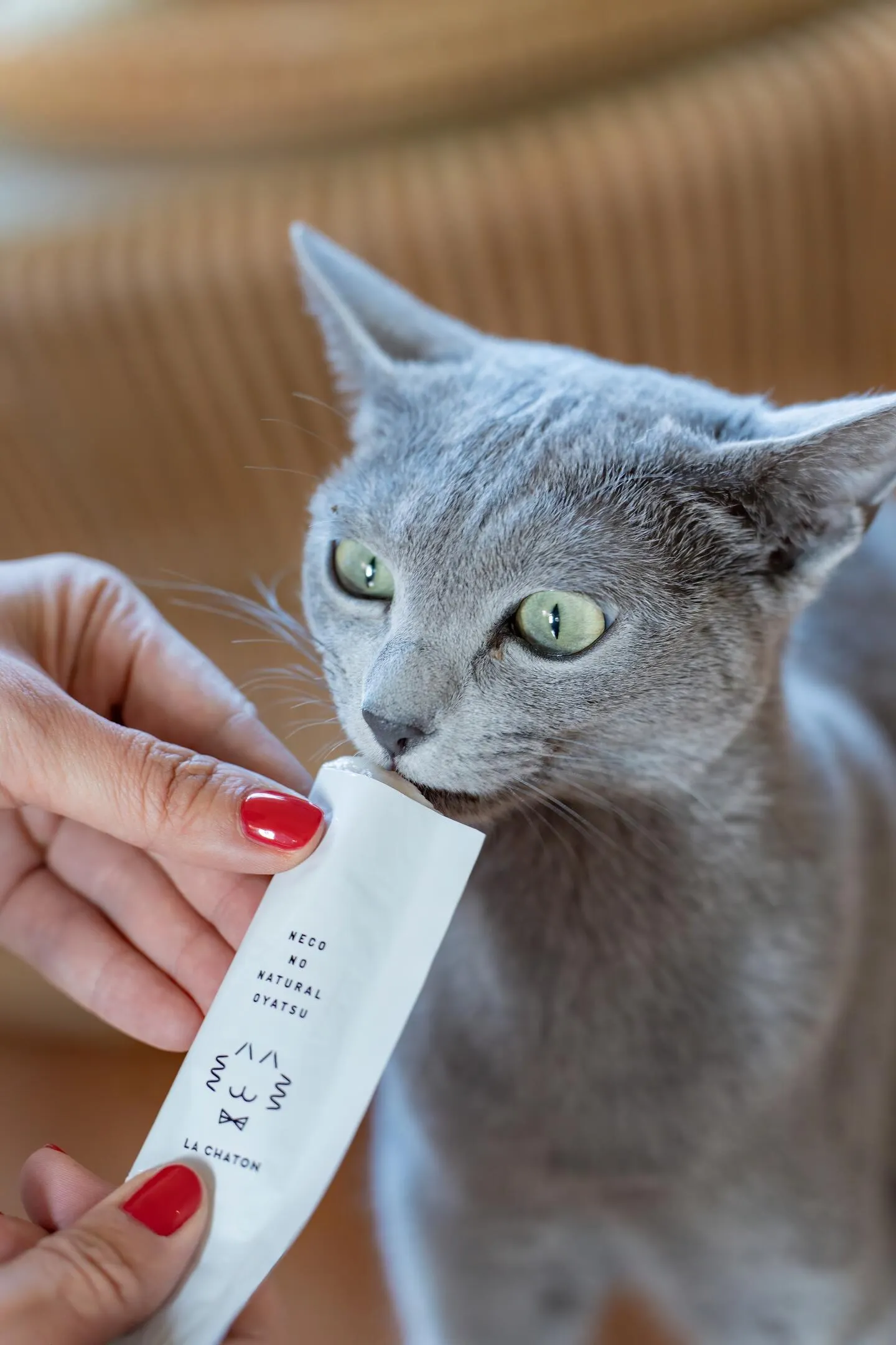 また、製造時に添加されたものには記載義務がありますが、原材料に含まれる添加物には記載の義務がありません。言葉で体調の変化を表現できない猫や犬のために、安全を確信できる食べ物を選んであげたい、そんな想いでプロデュースしたのが今回のラシャトンの極上ナチュラルチキンペーストです。