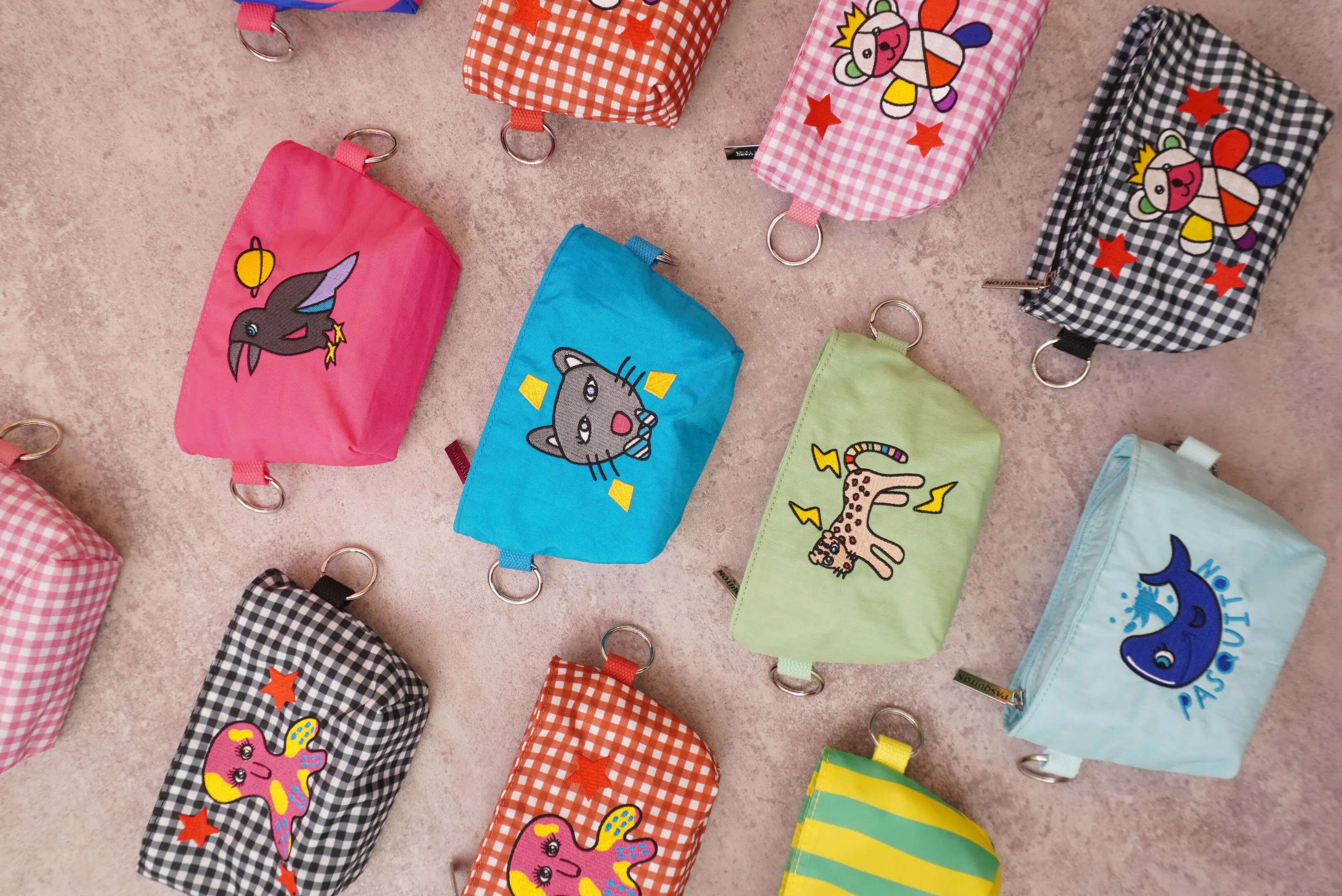 パスキートンのコレクションは アーティストYUの大好きなフレンズたちが持つ個性が キラキラと輝くようにデザインしたものばかり。