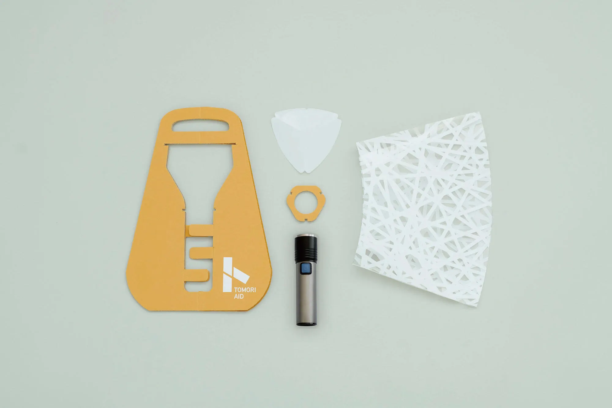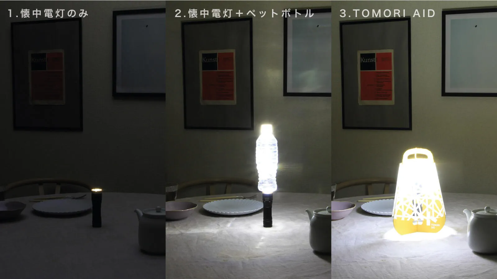 実際に自身で経験し、直面しなければわからなかったあかりの問題を解決するため、各家庭が一つは必ず常備している懐中電灯を使い、周りを照らす照明に変身させるというアイデアを元にTOMORI AIDをデザインしました。