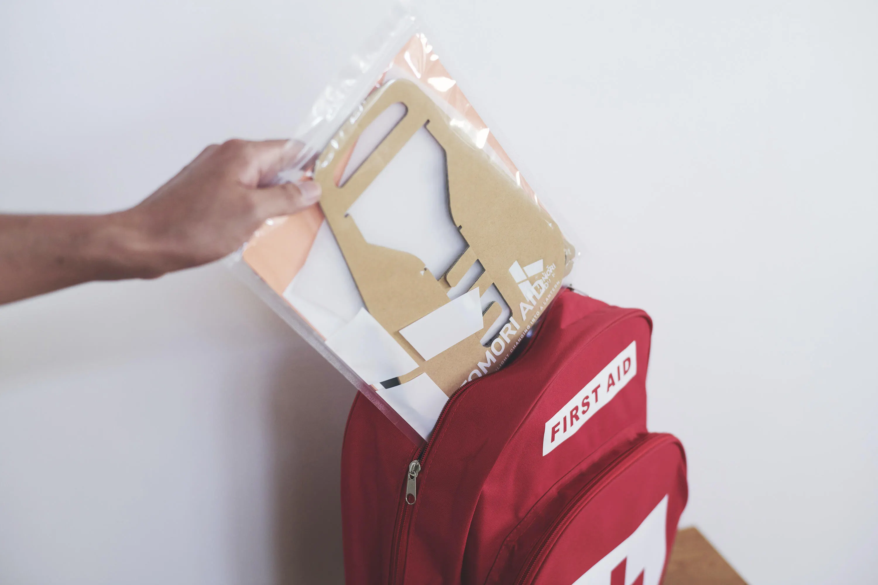 TOMORI AIDは本体を段ボールでつくる事で軽さと曲げの強さを実現しながら、折り畳めばA4サイズに納まる設計によって逃げる時にバッグに入れる必需品の邪魔にならない事を可能にしました。もちろん家でしまっておくにも場所をとりません。