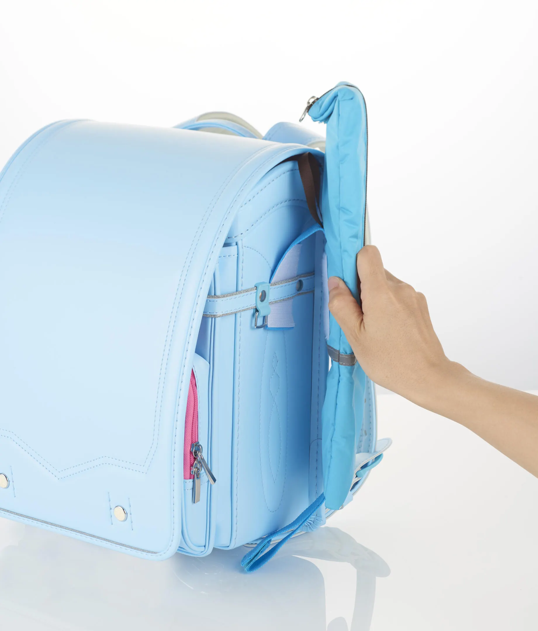 そして「ランドセルサイドポーチ」は、ランドセルのサイドベルトに簡単に装着でき、長細い荷物や体操着などを収納できます。手荷物が減ることで安全性が高まり、忘れ物防止にもつながります。耐久性のある生地を使用し、毎日の通学にも安心してお使いいただけます。