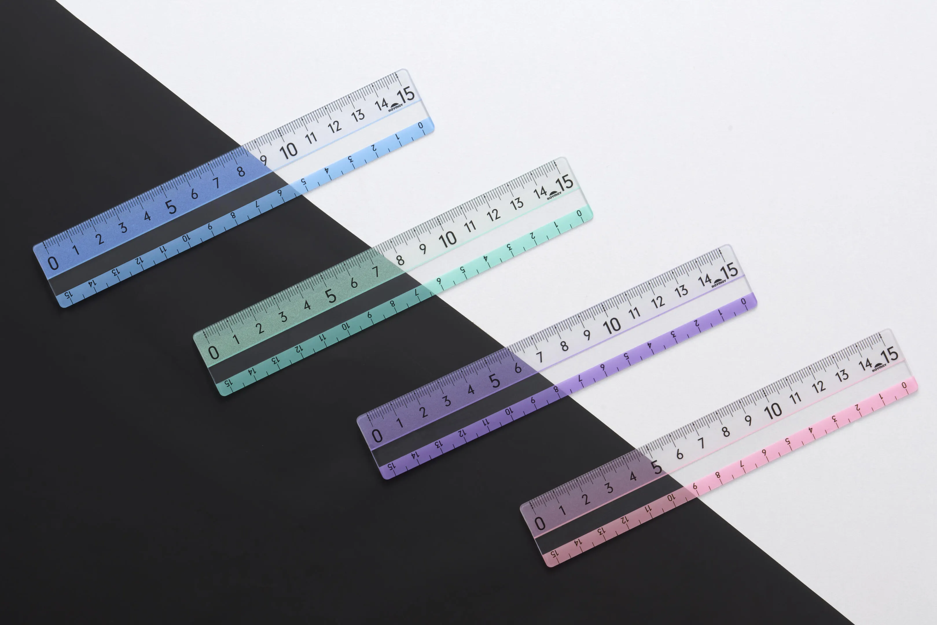 次に「ヨクミエルーラー」は、目盛りがはっきり見やすく、端から0メモリが始まる工夫がされています。小さな手でもしっかり持てる形状で、線を引くのが苦手なお子さまにもおすすめ。先生や保護者からも「使いやすい」「学習がスムーズになった」と好評です。