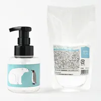 石けんワークス 無添加泡のハンドソープ つめかえ用 300mL + 石けんワークス泡用ポンプ容器(シロクマとペンギン) シロクマとペンギン「調子はどう?」