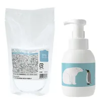 石けんワークス 無添加泡のハンドソープ つめかえ用 300mL + 石けんワークス泡用ポンプ容器(シロクマとペンギン) シロクマとペンギン「やぁ!」
