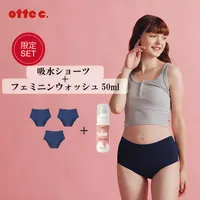 【初回注文限定】otte c.吸水サニタリーショーツ+フェミニンウォッシュ 【限定】S・M・L ×各1枚(ネイビーのみ)+フェミニンウォッシュ50mlセット