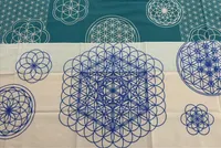 フラワーオブライフ 波動効果日本手ぬぐい (サンプル) 白地に瑠璃色