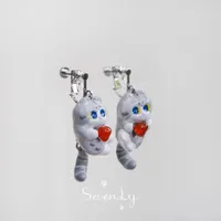 【2025秋冬新作】猫顔 猫形 しっぽフリフリピアス『MEWJIミャオジ』イアリング SV925 ギフト☆ファッション シルバー イアリング