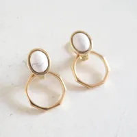 \最新作!/『痛くない』クリップタイプのイヤリング / 楕円ストーン+リング2wayイヤリング*ホワイトターコイズ【Multi】※BOX付き