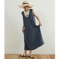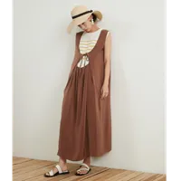 KNSO368-Aライン・リネンミックス・背中開きワンピース・ジャンスカ・ジャンパースカート SAND/M