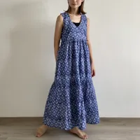KNXO522・ジャガードシフォン・レイヤード風フレアワンピース・2枚仕立て風ドレス・ノースリーブワンピース・裏地付き 8月中旬入荷BLUE/FREE