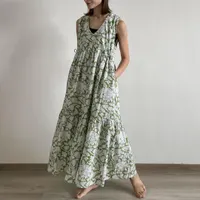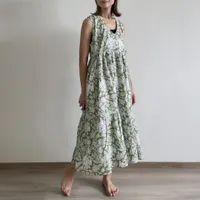 KNXO415-Tシャツやニットと合わせやすいフラワープリント・ノースリーブ・ワンピース OLIVE/FREE