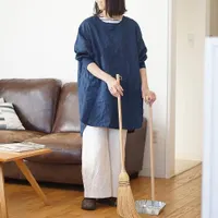 【BR5012】 リネンシャンブレー・チュニック割烹着 リネンシャンブレー・チュニック割ぽう着-ネイビー-F
