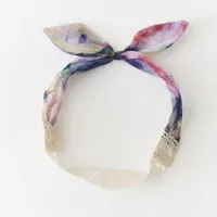 人気ベビー雑誌掲載!さわやかマーブルチュールリボンうさ耳ヘアバンド パープルピンク