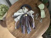 裂き布のシュシュ big ribbons (khaki & black)