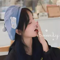 【限定販売】猫柄 猫イラスト フワモコ刺繍 ベレー帽『MEWJIミャオジ』2サイズ展開☆ファッション ブルーM