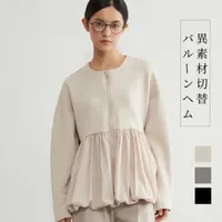 異素材切替 バルーンヘムジップブルゾン 立体スリーブ レディースアウター GRAY/FREE