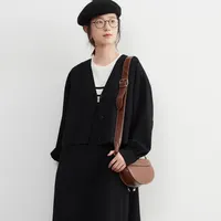 KNXC417-リーフジャガードカーディガン・スナップボタン・ライト・長袖ジャケット・アウター FREE/BLACK